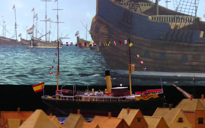 Op de beroemde maquette van de Reede van Texel is opeens de stoomboot van Sinterklaas verschenen! Kan jij hem vinden tussen de andere miniatuurschepen?